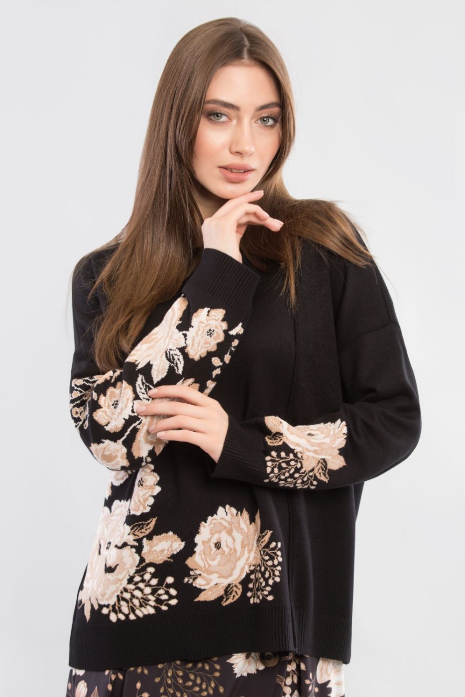 Джемпер из вискозной пряжи связанный цветочным узором. Свободный силуэт. Линия плеча спущена.