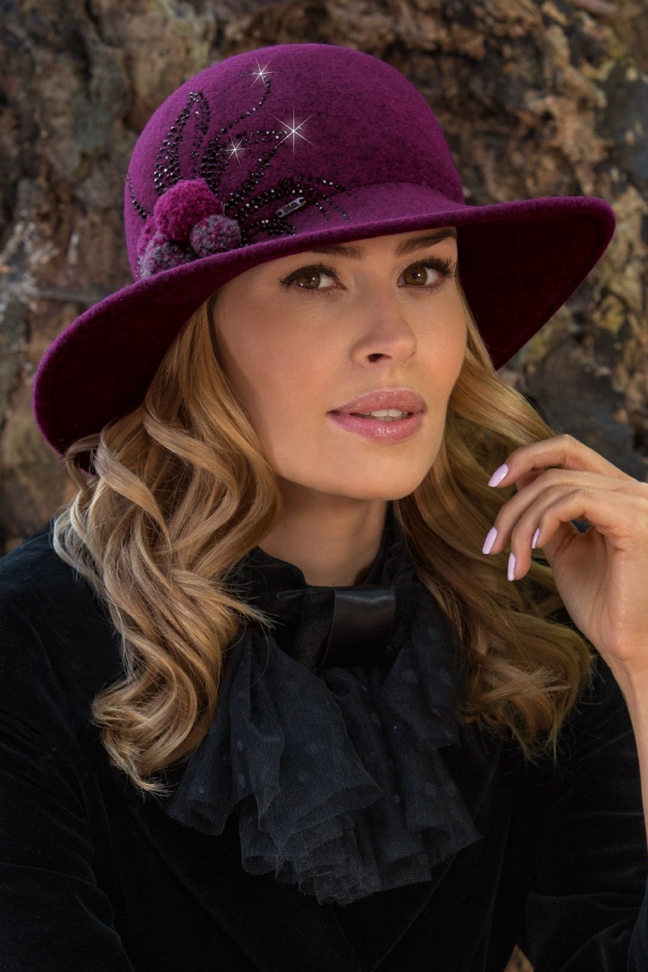 Очень красивая, женственная шляпа из 100% натуральной мягкой шерсти чешского производства с добавлением нитки меланж из новой коллекции польского бренда WILLI 2019