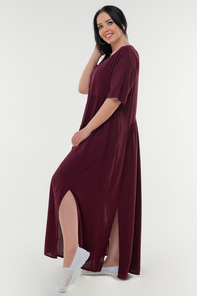Невероятно красивое штапельное платье цвета марсала покоряет с первого взгляда. Свободный летящий фасон притягивает восхищенные взгляды. Выбрав шикарную модель длиной макси, покупательница пополнит гардероб универсальной вещью на все случаи жизни. Особенности: вырез округлый, рукав до локтя, карманы в боковых швах, разрезы по рельефам полочки и спинки.