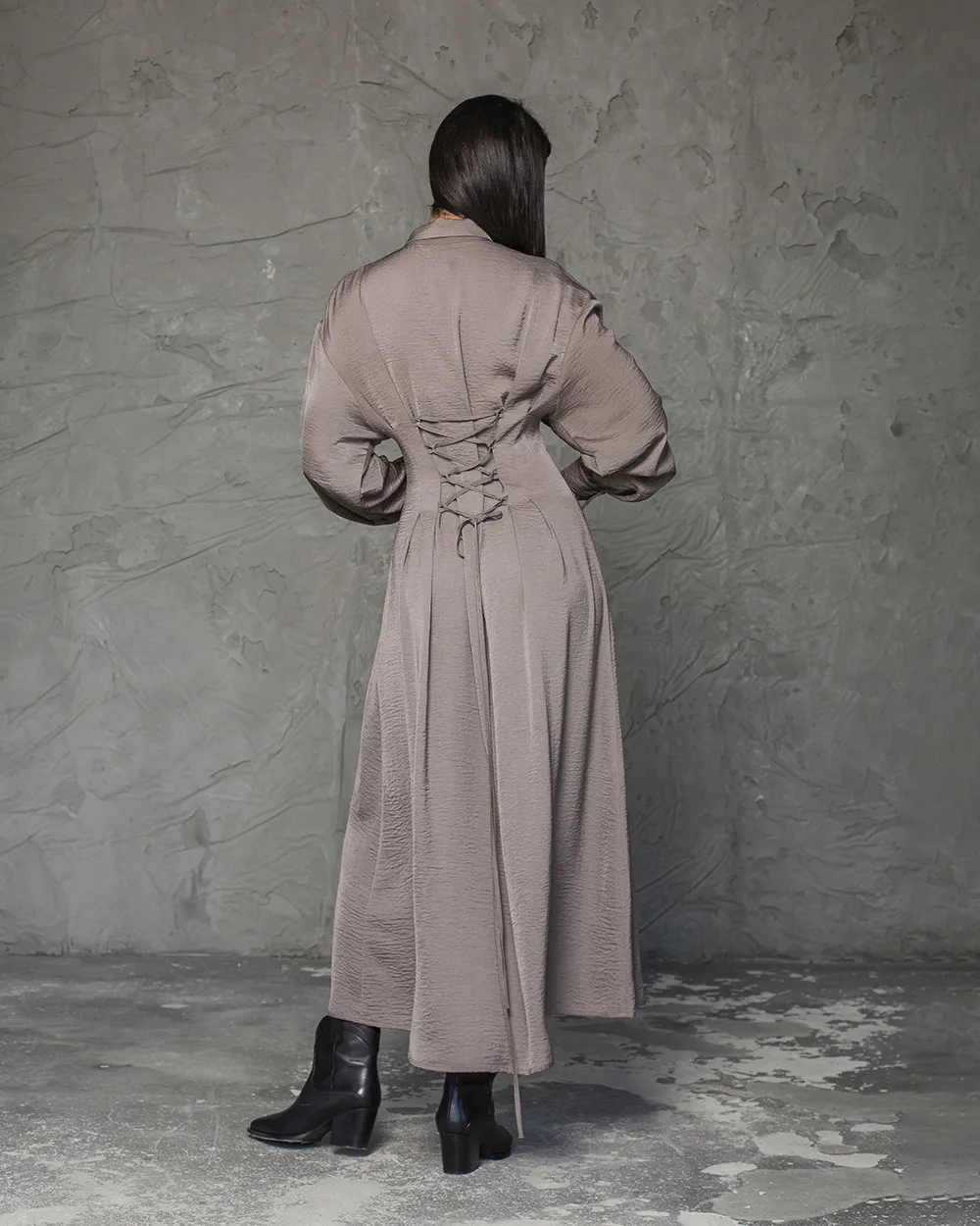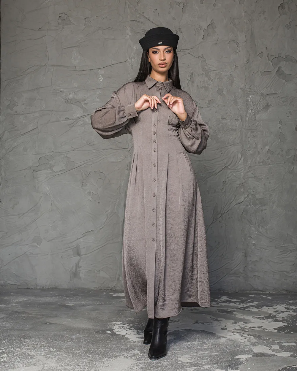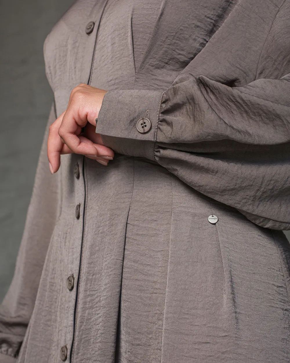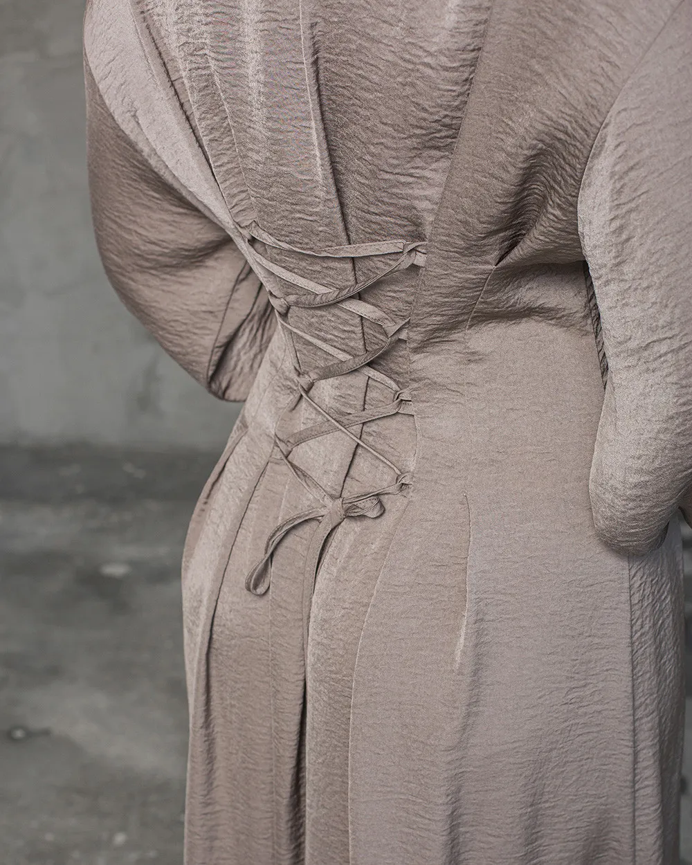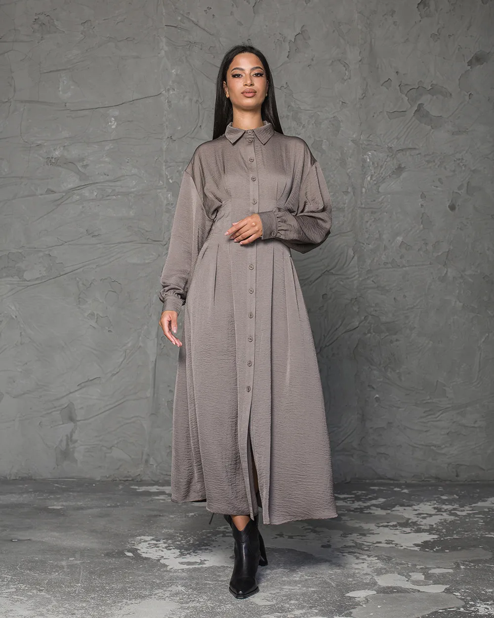 Довга сукня-сорочка з віскози — це поєднання легкості, свободи та вишуканості. Вільний крій із м’якими складками на талії створює ідеальний силует, а спущене плече й широкі рукави додають невимушеної елегантності. Ґудзики спереду та шнурівка на талії дозволяють регулювати посадку — для максимального комфорту й витонченості. Сукня, що підкреслює жіночність у кожному русі.